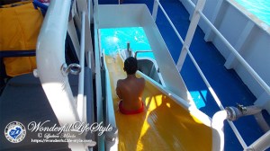 mladina se je že takoj ob prihodu spuščala z ladje po toboganu, nekateri so skakali iz pomola, člani posadke pa so na žaru pripravljali meso in kar kmalu je tudi zelo lepo zadišalo.![]()
