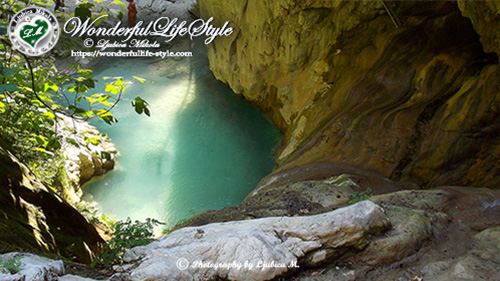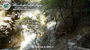 Ob cesti je bila speljana struga, ki je bila v spodnjem predelu popolnoma suha, višje pa je bilo v njej še nekaj vode. Pot oziroma cesta se je nadaljevala ob strugi in prispela sva do manjšega gostišča, kjer so gostje uživali v prijetni senci. Cesta se je tu zaključila in nadaljevala se je urejena pot, ki je vodila med skalami in raznim zelenjem, hrupa iz letovišča že zdavnaj ni bilo več, slišati je bilo le glas narave … šumenje listov, petje ptic in občasno rahlo žuborenje vode.