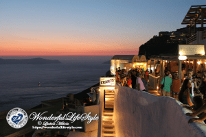 Romantični večeri so v mestecu Fira nekaj vsakdanjega. Ulice, obzidja, stopnišča ter terase se napolnijo z obiskovalci, ki prihajajo za ta posebni trenutek tudi iz preostalih letovišč otoka, da zaužijejo romantiko na takšen ali drugačen način. Celotno mestece Fira spominja v teh trenutkih na nekakšno tribuno teatra, kjer so na eni strani gledalci, na drugi pa scena, ki jo predstavlja kaldera v sončnem zahodu.