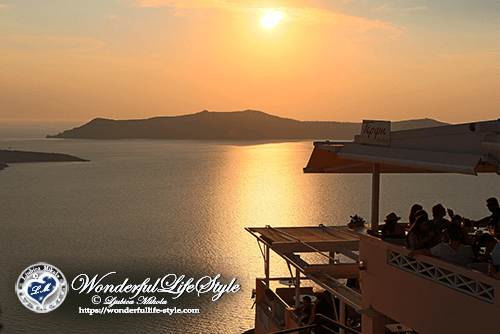 Romantični večeri so v mestecu Fira nekaj vsakdanjega. Ulice, obzidja, stopnišča ter terase se napolnijo z obiskovalci, ki prihajajo za ta posebni trenutek tudi iz preostalih letovišč otoka, da zaužijejo romantiko na takšen ali drugačen način. Celotno mestece Fira spominja v teh trenutkih na nekakšno tribuno teatra, kjer so na eni strani gledalci, na drugi pa scena, ki jo predstavlja kaldera v sončnem zahodu.